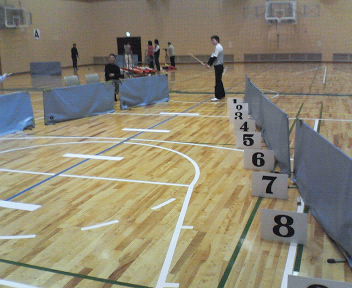 都内の某体育館で行われた取材の様子です。 左に座っているのが記者さん、右で構えているのはテストの人です。 |